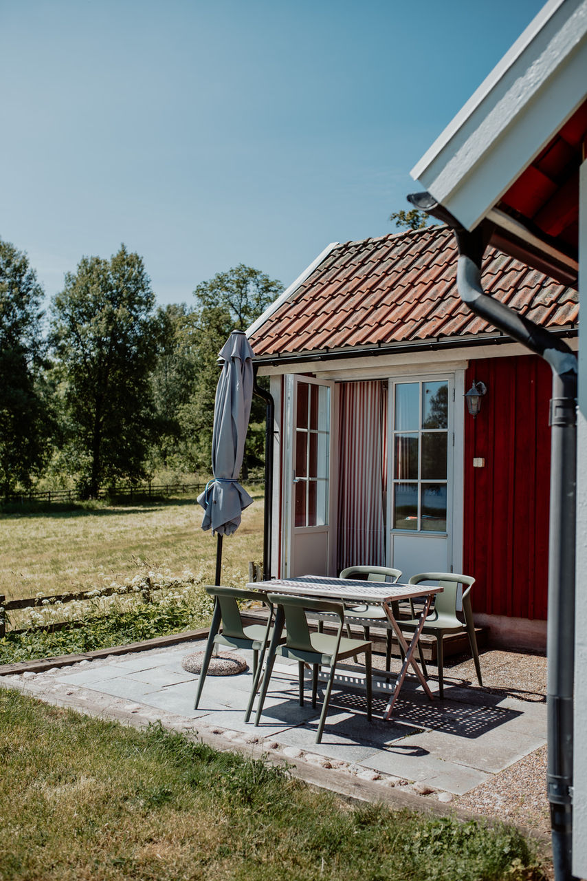 Två olika boendealternativ erbjuds. Alla med egen brygga och sjönära. Vi har hög kvalitet på sängar och övrig modern standard. Uteplats med grill, båt, flytvästar. Trådlöst internet finns tillgänglig i alla boenden. Tvättmaskin i stallbyggnad med torkmöjligheter vid stugorna. Gården har en egen strand för gästerna. Laddningsmöjligheter för elbilar.